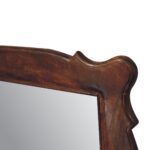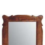 This high quality oblong shaped mirror is fitted into a beautiful, handcrafted 100% solid mango wood frame. It features a chestnut finish, with elegantly hand carved designs around the frame. All mirror frames are supplied with a metallic clips, for mounting it on the wall and are pre-fixed with a high quality mirror.
