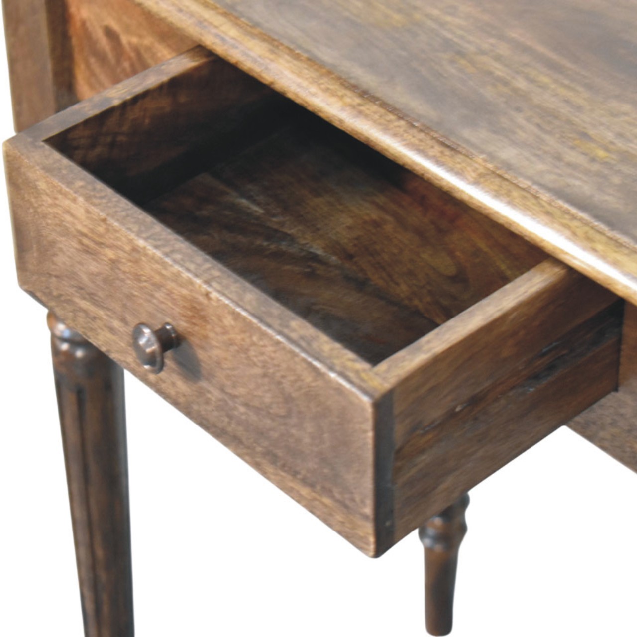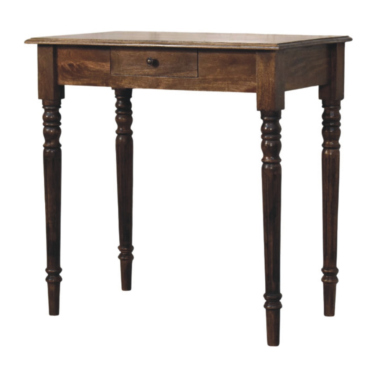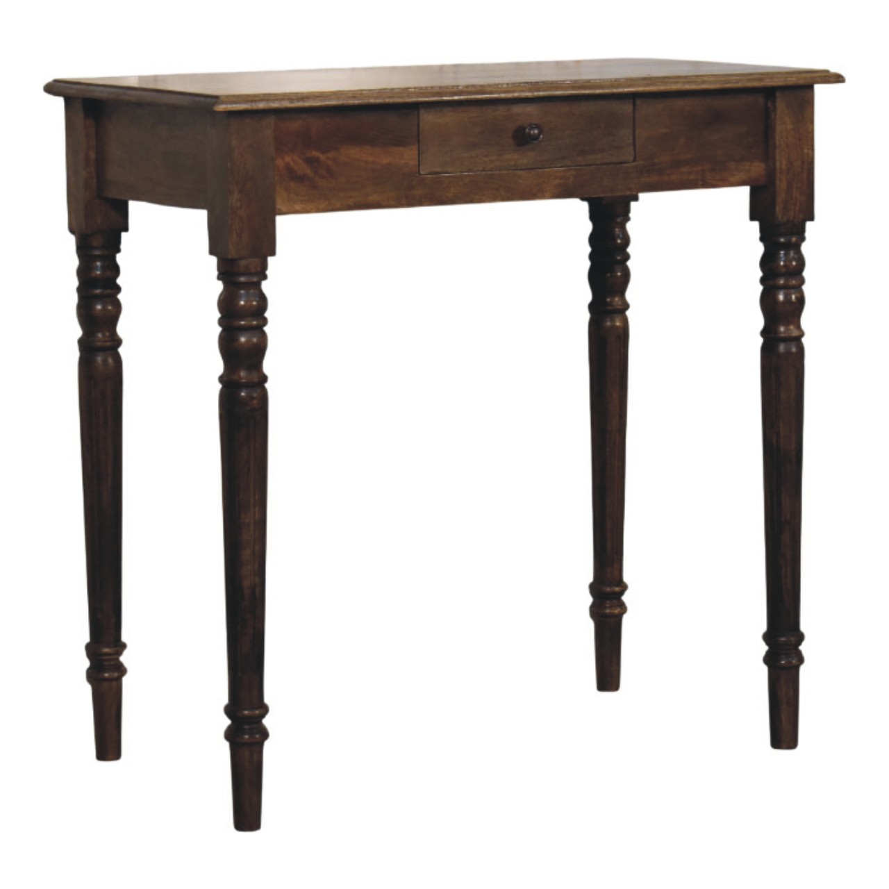 Crafted from 100% solid mango wood and finished in a classic grey tone, this writing desk brings a refined touch to your space. The gracefully turned legs lend a traditional character, while the compact drawer keeps your essentials close at hand. Whether placed in a hallway or study corner, this piece delivers timeless style with practical functionality.