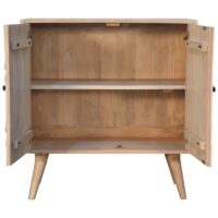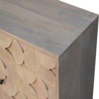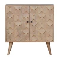 This stunning Hourglass Carved Marble Cabinet has been constructed from 100% solid mango wood in a lime ivory finish and features Nordic-style legs. It has a beautiful carved pattern on the door fronts and spacious shelves inside for putting away any household belongings. This piece would fit perfectly in a living room or hallway.