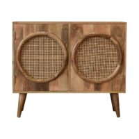 The Larissa cabinet will stand out in your interior thanks to its understated look and subtle originality. The beautiful grain pattern and rattan design do not make this sideboard any less functional. In fact, it has two doors and drawers inside which offer plenty of storage space. It makes it simple to store your tableware or your papers whether you decide to keep it in the dining room or the living room.