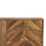 This Muna Sideboard is stylish and useful, featuring 3 drawers made with a straight and geometric pattern it has a cabinet with shelves inside to store away any bits and bobs you wish to keep out of site. This sideboard also comes with shiny brass knobs and nordic style legs. Perfect for the hallway or living room.