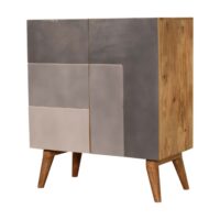 Offering a clean and sharp L pattern and hand painted in 3 rich shades of grey this cabinet offers plenty of room on top for a candle, ornament or plant. Storage is offered with two doors which can be used to easily store bits and pieces with the space of 2 drawers. Other features include Nordic style legs and the body is constructed from 100% solid mango wood.