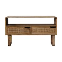 Stylish and sophisticated, this Tallin Media Unit boasts an elegant styling, perfect for adding a contemporary touch to your home. The gorgeous range is finished in an oak-ish finish with 2 rattan drawer fronts to help to brighten your room some other features include an open slot, decent size cut-outs for easy access into the drawers and U-shape legs