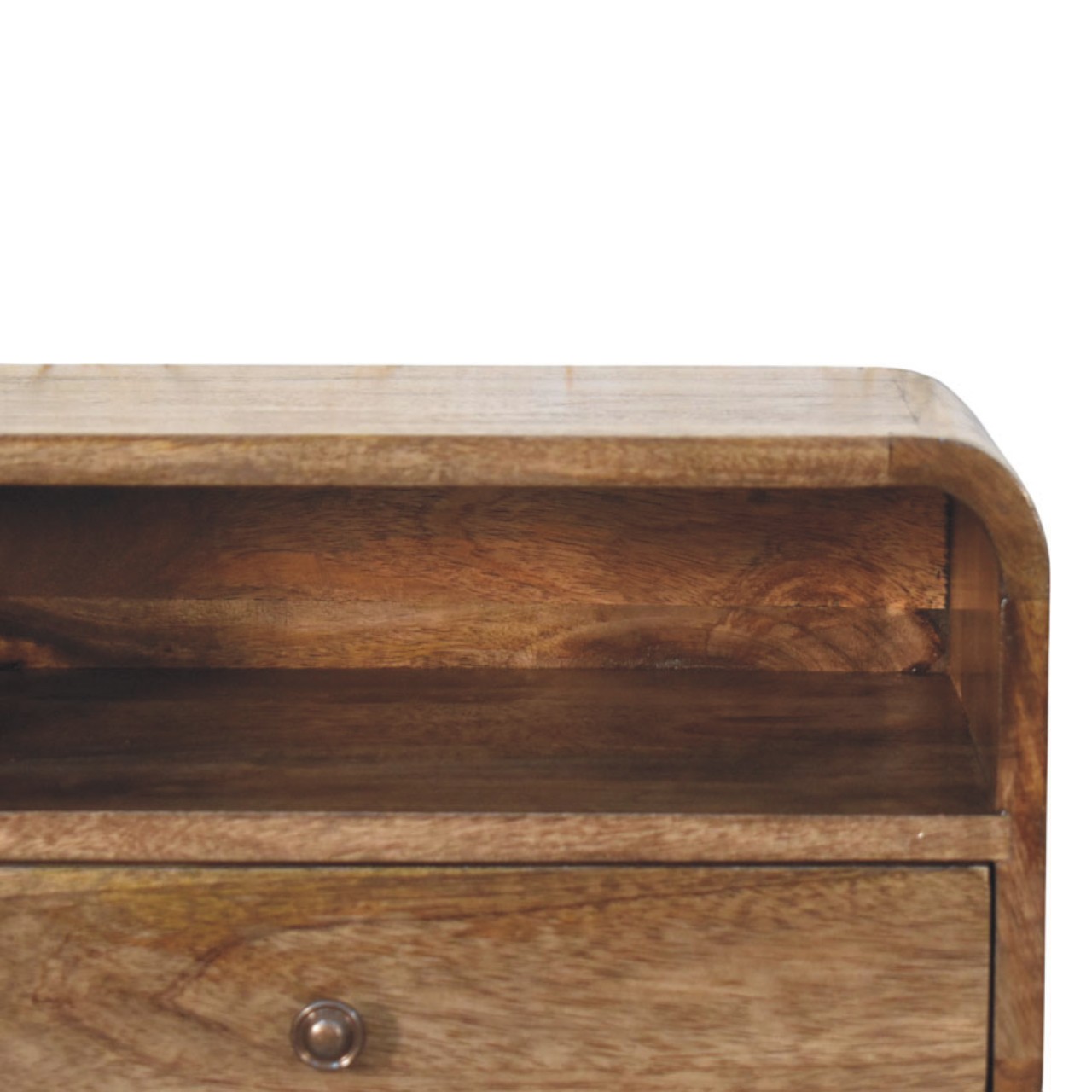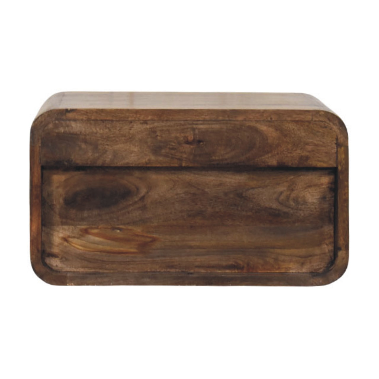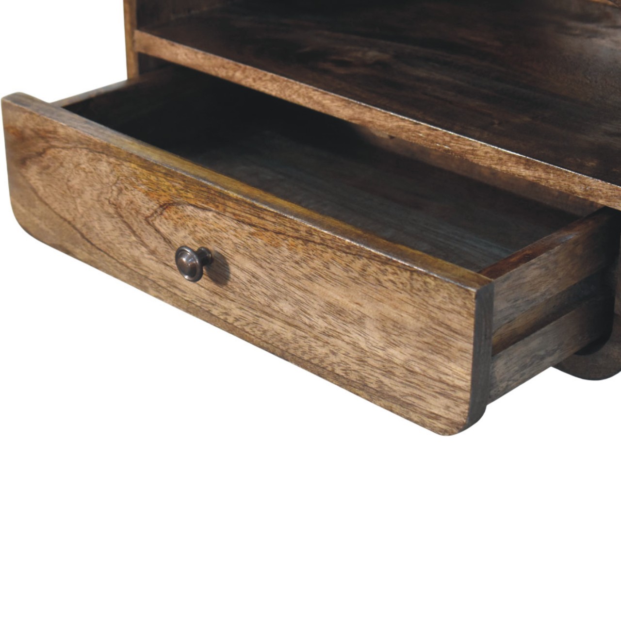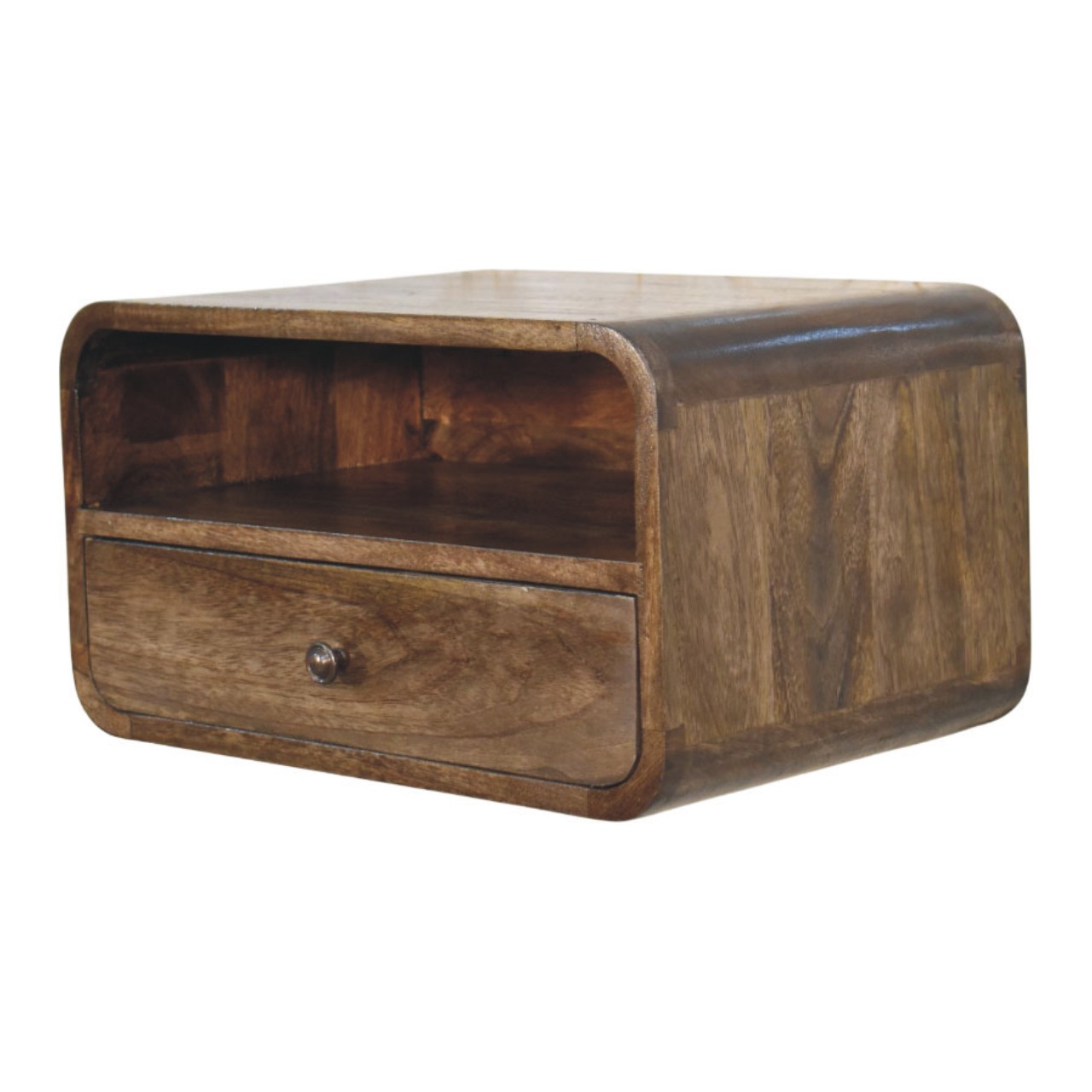 Crafted from 100% solid mango wood and finished in a refined classic grey, this wall-mounted bedside brings space-saving style to any interior. Its rounded corners soften the silhouette, while the open slot offers easy access to nighttime essentials. A single drawer below keeps clutter out of sight, making it an elegant yet practical solution for modern living spaces.