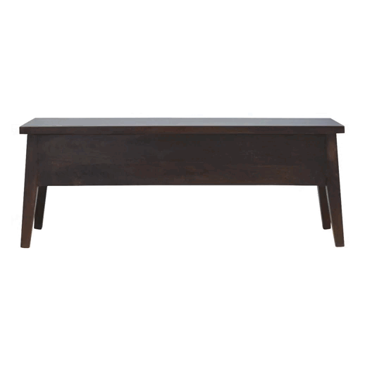 This storage bench is constructed from 100% solid mango wood and has a walnut finish. Useful storage space is provided under the seat, and the lid stays open so you can safely and easily take things in and out. A both good-looking and practical bench that gives a warm, cosy feeling works just as well in the living room, hallway or bedroom. Other features include 4 Scandinavian styled legs.