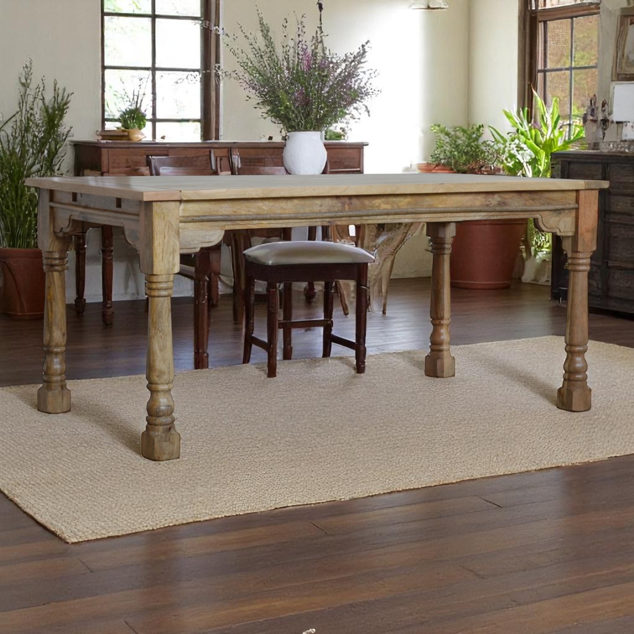 Rustic – Hand-carved mango wood tables with bold grains and natural edges.