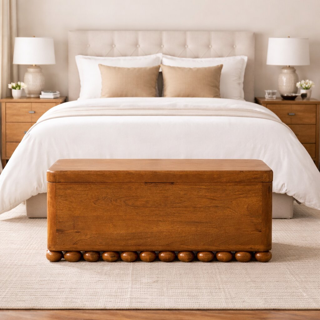 Handsome wooden storage benches made from solid oak, acacia, mango wood, or other hardwoods bring natural beauty indoors. Wood finishes like distressed, painted, or stained allow you to customize the look. Ornately carved storage benches showcase beautiful woodworking.